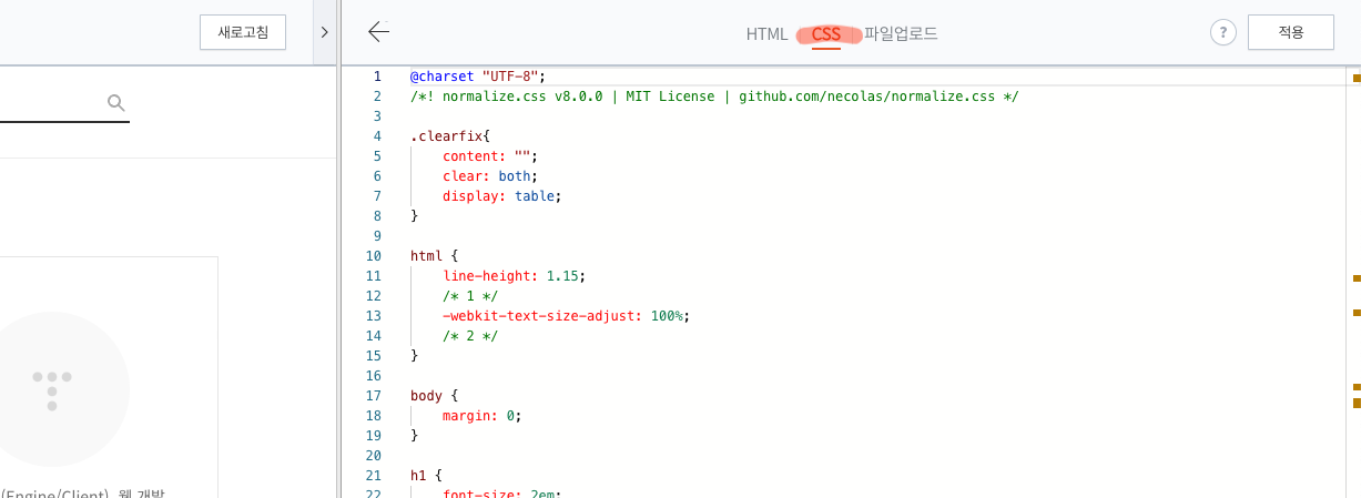 2. (우측 패널) 스킨 편집 창 > (썸네일 아래) html 편집 클릭