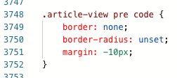패딩을 줄이기 위해 pre 안 code 태그에 -10px 마진을 주었다.