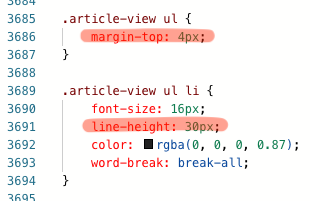 리스트의 줄간격이 좁고, 아래 깊이로 들어갈 때 너무 많이 띄어진다.