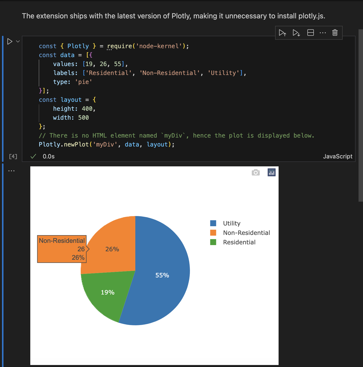 plotly 샘플 코드도 다음과 같이 정상 동작한다. (plotly 패키지는 Node.js Notebook (REPL)에서 자체 지원)